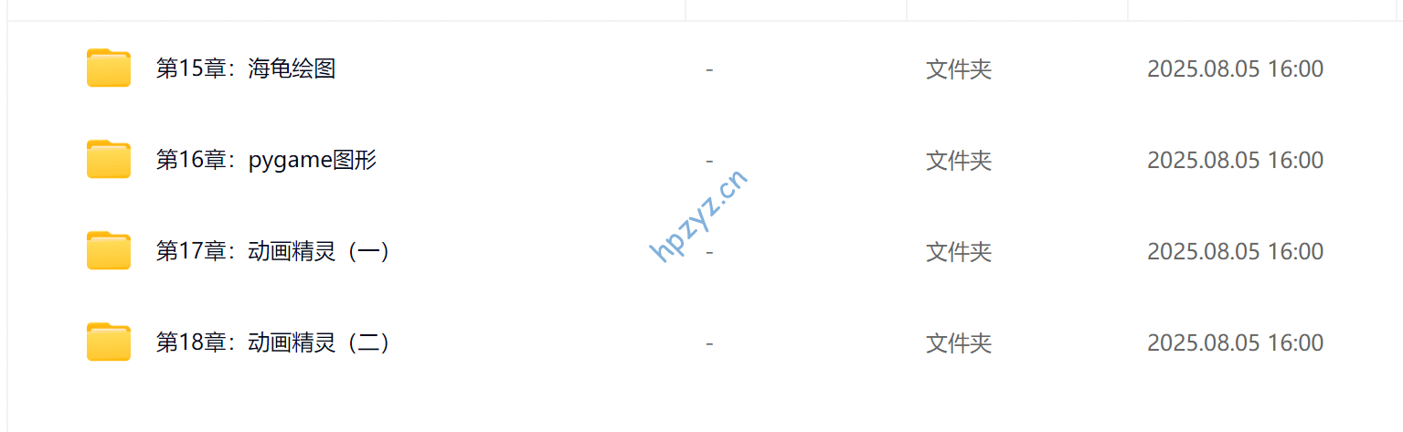 这是面向 15 岁以上人群的 Python 高级教程资料,聚焦图形与动画开发,包含海龟绘图、pygame 图形基础及动画精灵等内容,可帮学习者掌握 Python 图形化编程与简单游戏 / 动画制作技能,适合有一定基础想拓展图形交互开发的 15 岁 + 人群