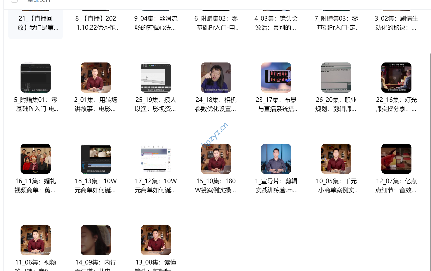 课程收获 获得 20 集精品视频课和商单案例源文件。 加入督学答疑学习社群,参与定期直播作业点评。 获取海量剪辑素材。 学习专业前期技术,包括打光收音、相机拍摄、直播系统等,助力成为公司里的影视技术专家或吸粉百万的网红大 V 博主。 适合人群 学生党:可系统学习前期摄影打光和后期剪辑。 职场人:通过上手练习 10 万元级商单实战案例,快速提升剪辑水平,成为公司里的技术大佬。 剪辑新手:借助视听语言实例分析,学习更多剪辑思路,提升节目效果。 UP 主:能从中获取剪辑技巧和创作思路,助力内容创作。
