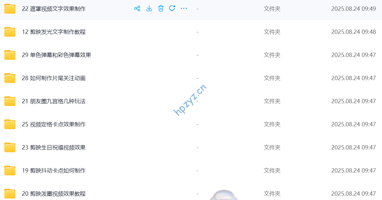 这些是剪映专业版剪辑学习资料,涵盖文字效果(发光、烟雾、镂空等 )、视频效果(遮罩、泼墨、剪影等 )、动画效果(片头文字开场、片尾关注等 )、其他特效(弹幕、定格卡点等 ),还有基础操作及综合玩法(朋友圈九宫格、表白 / 生日视频等 ),从基础到进阶,助你学习多样剪映剪辑技巧,提升视频创作能力 。