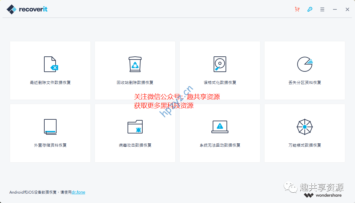 万兴数据恢复专家(PC)是一款超强大的数据恢复软件,可以恢复电脑上的一切数据,包括误删、shift+del(永久删)、回收站、病毒、格式化、U盘等外设、系统崩溃等所有导致数据丢失的情况,通通都可以恢复。可以说这是盘哥找到的最好的数据恢复软件了。软件是绿色免安装的,下载好后,解压,双击即可打开,软件针对不同情况下的数据丢失,有不同的数据恢复方法,如果你不知道用哪种方法也没关系,可以直接选择最后一种万能恢复方法。真的是太人性化了~软件支持超多外部设备的数据恢复,什么U盘、存储卡、数码相机、MP3/MP4、摄像机等等都可以用它来恢复数据。