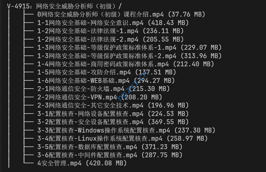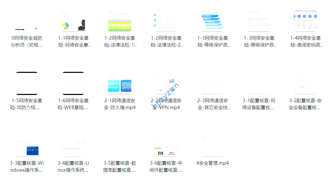 本套课程网络安全威胁分析师(初级),零基础学网络安全,课程分为网络安全基础、网络通信安全、配置检查、安全管理四大部分,文件大小共计4.76G。 作为初级网络安全分析师需要重点是学习基础的网络安全知识、常见攻击和防御技术、以及使用各种安全工具来识别和响应安全事件等在本套课程中都有详细的讲解